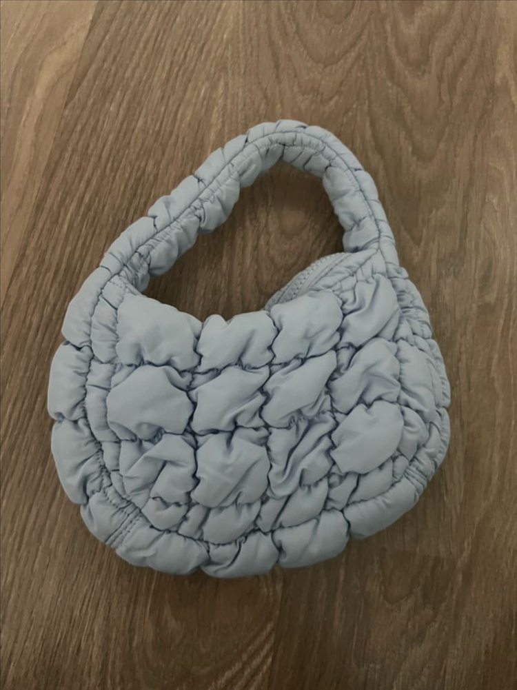코스 초미니 구름백입니다 라이트블루 화사하고 예뻐요 예민하신분은 구매자제 부탁드립니다