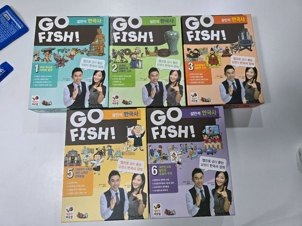 설민석 GO FISH! 한국사 고피쉬 1.2.3. 5. 6 총 5박스 입니다 상태는 깨끗합니다 구성품중 5번만 설명서가 없습니다