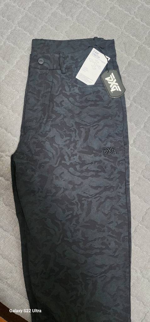새상품 pxg 카모플라주 패턴 골프바지예요. 태그 그대로 달려있고 여분 단추도 포함되어 있어서 바로 착용 가능합니다. 사이즈는 34인데 32입으시는 분이 입으시면 맞겠네요 상태 완벽해요! 일본직구 정품입니다