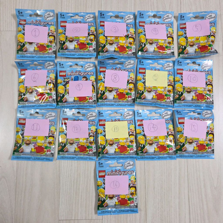 레고 71005 심슨 미피 시즌1 16개 1세트 팝니다. 상단 가위로 잘라서 직접확인후 다시 테이핑했습니다. 미전시 미조립상태. 17만입니다