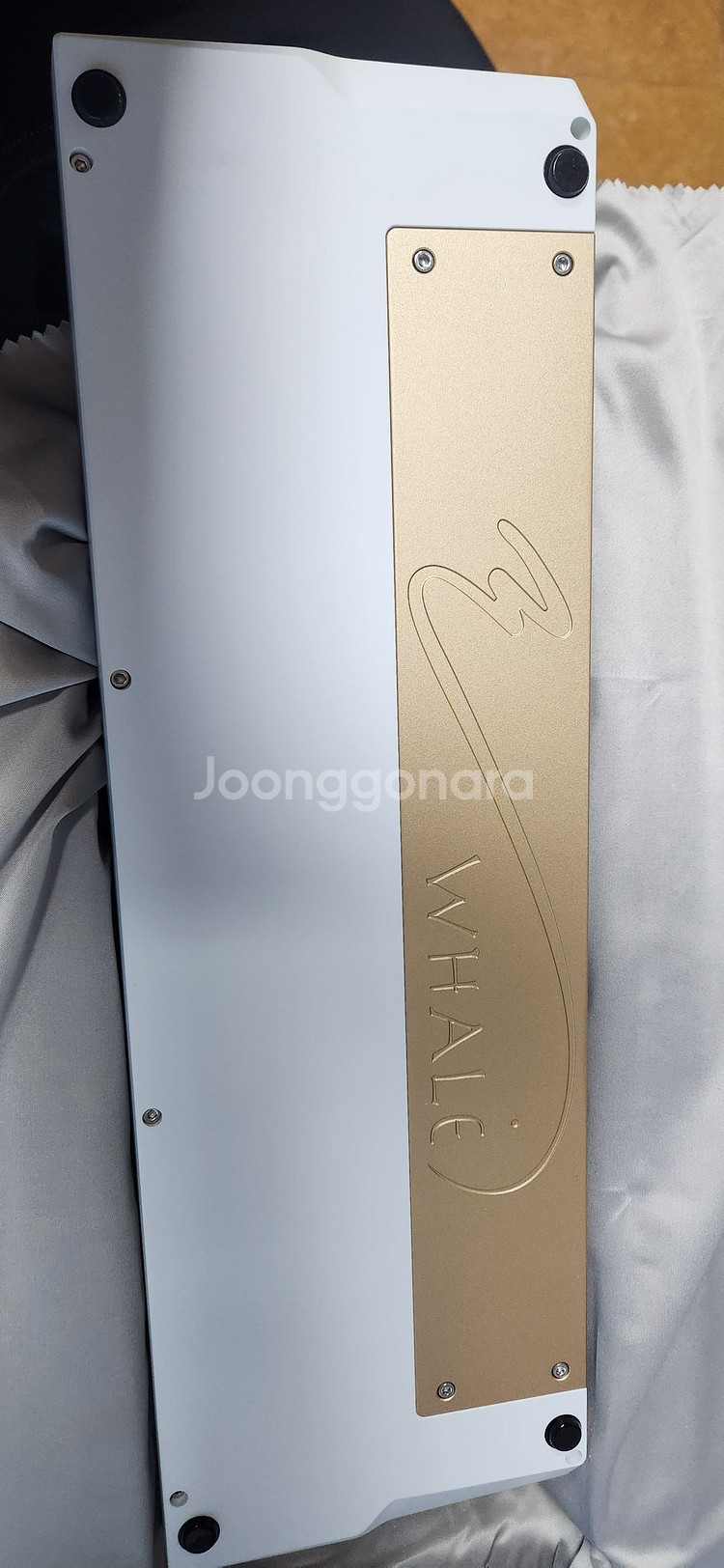 린웍스 풀고래 화이트(실버 개선 상판) 솔더링기판,알루보강 다신흑스위치(슬커63.5g,데스키필름),줄테빌 스튜디오 XXX 공방작 사용시간 5분이내 GMK 스페이스카뎃 블루베이스 별도