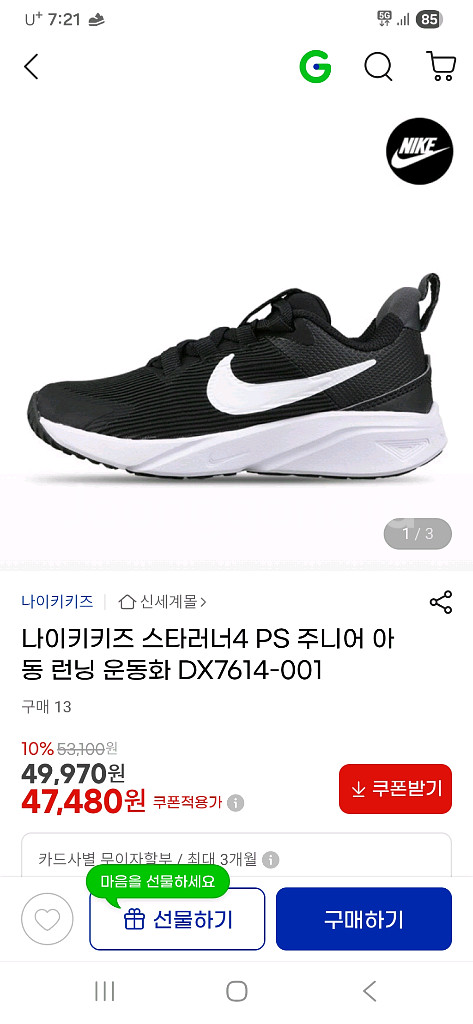 여성신발 새상품 나이키 런닝화 운동화 유아동