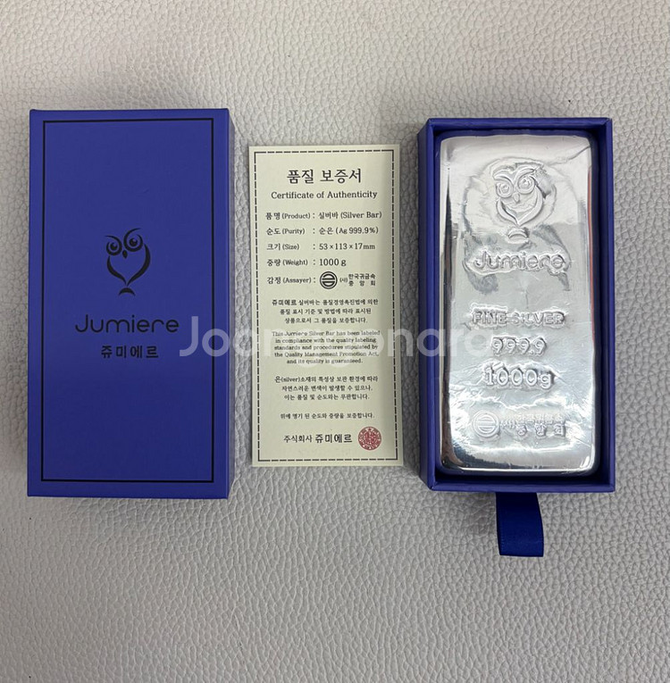 개인 소장하던 실버바 제품이며 실물 보유 중입니다. • 쥬미에르 포나인 실버바 1kg (한국귀금속중앙회) 개당 5,580,000원 - 10개 남음 고가 물품 특성상 직거래만 진행하며 거래 시 실물 직접 확인 가능합니다. 📍 직거래 지역 : (서울) 가짜 안전결제 링크나 카톡 유도 안 합니다. 번개채팅 주세요