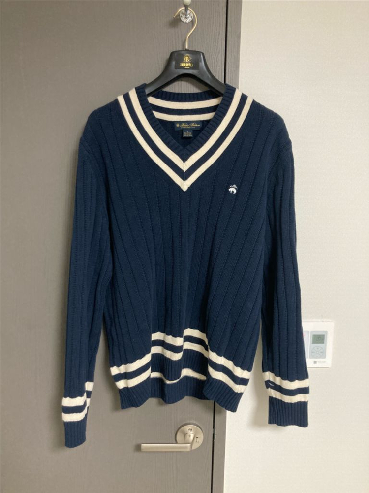 브룩스브라더스 남성 케이블 니트 L사이즈 네이비 색상 늘어날까봐 접어서 보관하고 있습니다. 비슷한 니트가 많아 정리합니다.