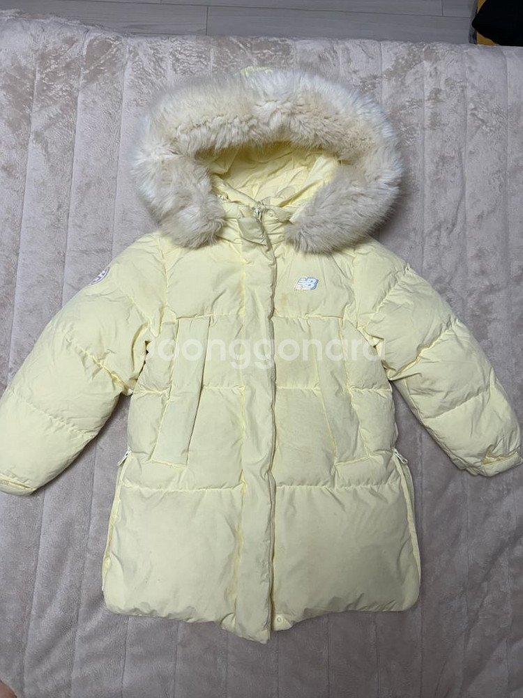 뉴발란스 키즈 롱패딩 130사이즈입니다. 털이 풍성한 모자가 달려있어 더욱 따뜻하게 입을 수 있습니다. 솜 빵빵하고 너무 예쁜 노랑인데 군데군데 때탐 얼룩과 전체적인 사용감있어 저렴히 내놓습니다. 저렴히 구매해서 세탁해 입히실분! 예민하신분은 패스해주세요! 환불X