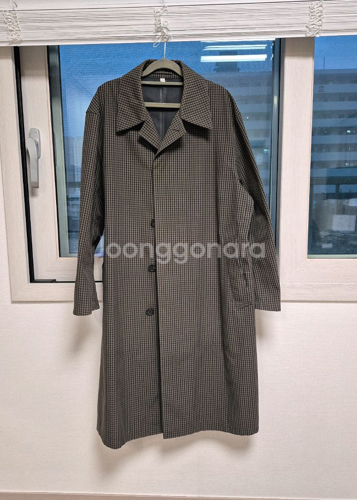 [유니클로] 남성 체크 패턴 트렌치 코트 판매합니다(사이즈: XL/색상: 카키)