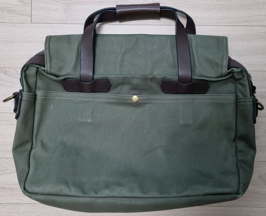 바엔 브리프케이스 오터그린 판매합니다. 해외 공방에서 제작한 가방으로 필슨 257 과 유사한 디자인입니다. 강한 면 소재로 튼튼하고 약간 스크래치가 잘 생길 것 같은 소재입니다. 가죽도 튼튼해서 내구성이 좋아 보입니다. 앞뒤로 있는 수납 공간에 잠금 버튼이 있는 점이 다르네요. 가방이 많아서 사용 안하고 보관만 하다가 내놓습니다. 쿨거래 하시면 적정선에서 가격 제안 받습니다. 그외 할인 요청 받지 않으니 양해 부탁 드립니다. 다른 상품과 같이 구매하면 할인해드릴게요. 파손면책 동의, 노리턴 택배 거래 가능합니다. 소모성 질문 답변 안합니다. 구매하실 분만 연락주세요. * 교환, 환불 불가 서로 시간 낭비, 에너지 소모하지 않도록 매너 거래 부탁 드립니다. 대화 시, 구매하지 않으시더라도 "구매 안한다, 생각해보겠다." 라는 말씀은 해주셨으면 합니다. 대화를 잘 마치는 것도 상호 간의 존중, 매너라고 생각합니다. 감사합니다.
