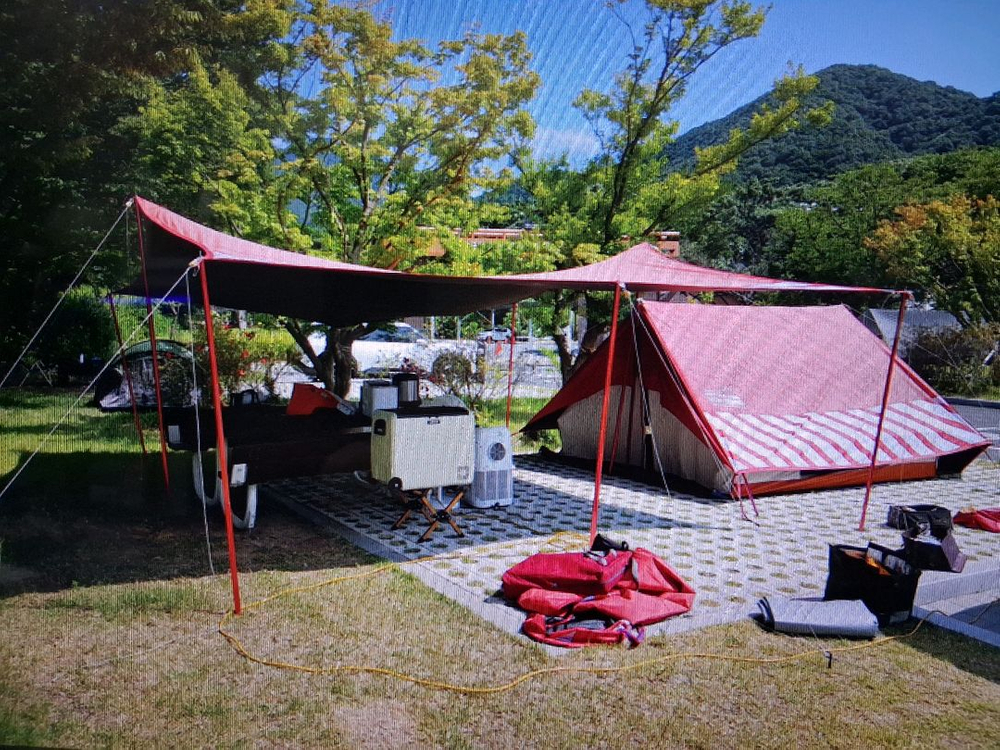 캠핑에서 사용하던 대형 캐노피입니다. 설치가 간편하고 넓은 공간을 제공해 캠핑 야외활동에 최적화되어 있어요. 사용감은 있지만 기능상 문제없이 잘 작동합니다.