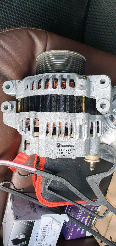 스카니아 알터 임니다 굴삭기 dx380 시리즈 공용 이구요 스카니아 차량도 덤프 카고 추레라등 공용으로 알고 있어요 재생품 임니다 올 바라시. 했음