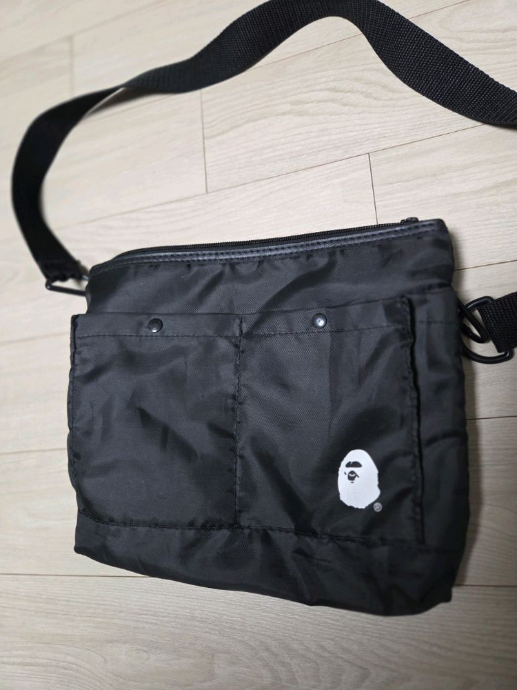 베이프 크로스백입니다 검정색이고 가볍게 들고 다니기 좋은 사이즈입니다. 가로 : 28.5 cm 세로 : 23.5 cm