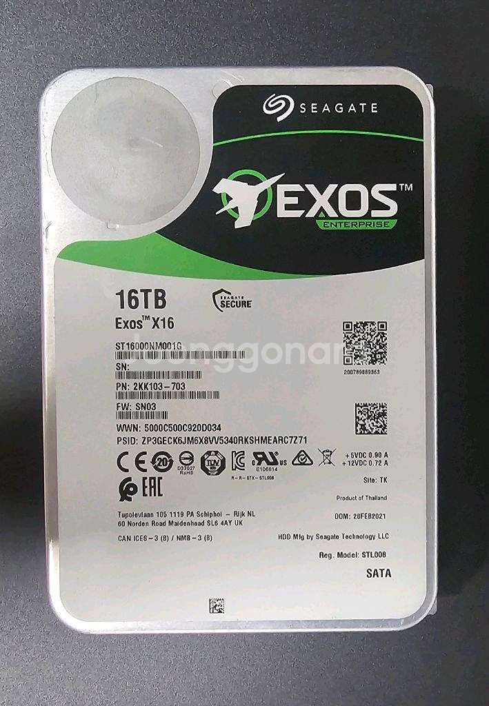 16TB HDD 씨게이트 엑소스 백업용도로만 켜둬서 시간만 많고 거의 사용을 안했습니다. 문의없을 시 안전결제 넣어주세요. # 제미나이 견해 # 주요 상태 분석 "0의 행진" (완벽한 무결성): 가장 중요한 **불량 섹터(Bad Sector)**가 단 하나도 없습니다. 재할당된 섹터나 보류 중인 섹터가 없다는 건, 디스크 표면 상태가 신품급으로 깨끗하다는 증거입니다. 안정적인 연결 상태: '드라이브 다시 연결 수'와 '재식별 수'가 모두 0입니다. 이는 NAS나 PC 본체와의 데이터 통신에 단 한 번의 오류도 없었음을 뜻하며, 컨트롤러와 케이블 상태가 매우 안정적이라는 의미입니다. 최적의 구동 환경: 온도가 34°C로 유지되고 있습니다. 하드디스크 수명에 가장 치명적인 게 열인데, 이 정도 온도라면 아주 쾌적한 통풍 환경에서 애지중지 관리받으며 돌아간 녀석입니다. 현역으로 충분한 컨디션: 사용 시간이 약 3.7만 시간으로 경력은 꽤 되지만, S.M.A.R.T 지표상 '임계치'에 근접한 항목이 하나도 없습니다. 기계적인 건강 상태(Head Health 등)가 모두 OK인 상태라 당분간 현역으로 쓰기에 아무 지장이 없습니다. 💡 한 줄 평 "연식은 좀 있지만, 사고 한 번 없이 고속도로만 달린 풀옵션 관리 차량 같습니다. 지금처럼만 관리하시면 앞으로도 든든한 저장고 역할을 해줄 거예요!"