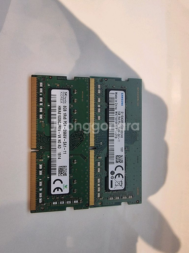 안녕하세요. 삼성, SK DDR4 8GB PC4-2666V 메모리 판매 합니다. DDR4 8GB 메모리 2개입니다. 상태 양호하고 정상 작동 확인했어요. 노트북 업그레이드용이나 교체용으로 좋습니다. 1개 구매시 8만, 2개 일괄 구매시 15만에 드립니다. - 사양 - 1. 삼성 모델 : M471A1K43CB1-CTD 세대 및 사양 : PC4-2666V-SA1-11 듀얼채널 구성 가능 주차 : 1931주차 2. 삼성 모델 : HMA81GS6CJR8N-VK N0 AD 세대 및 사양 : PC4-2666V-SA1-11 듀얼채널 구성 가능 주차 : 1914주차 직거래는 서울대입구역 부근 가능 타지역은 뽁뽁이로 포장해서 택배 보내드리겠습니다.