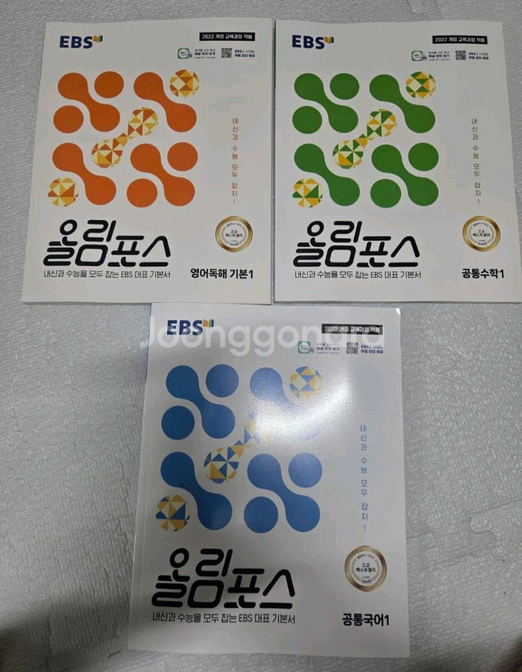 EBS 올림포스 참고서 세트입니다 - 2022년 개정 교육과정 적용 - 영어독해1, 공통수학1, 공통국어1 3권 새책입니다. 다해서 25000원에 내놔요