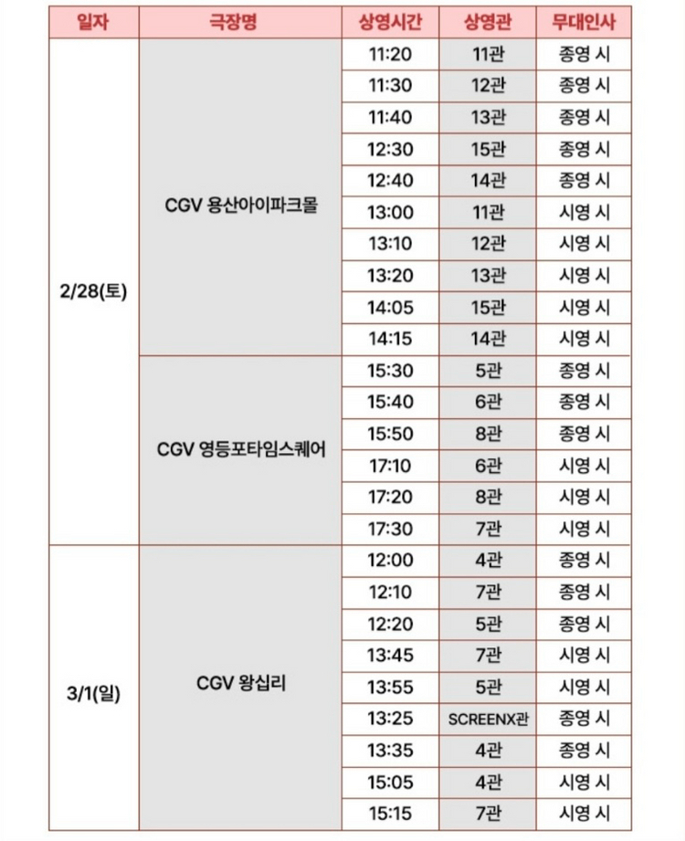1. 2/28(토) CGV영등포 15:40 J열 중블럭 통로근처 연석 2매 - 판매완료 2. 2/28(토) CGV영등포 17:10 F열 중블럭 통로석 연석 2매 - 판매완료 3. 2/28(토) CGV영등포 17:10 G열 중블럭 통로근처 연석 2매 - 22,000원 - 기재된 연석금액은 2매(2장) 전체금액입니다. - 좌석문의는 채팅으로 부탁드립니다 - 선물하기로 보내드립니다 - 바로 구매하실 분만 연락주세요. 채팅 후 15분간 말씀이 없으시면 차단하겠습니다.