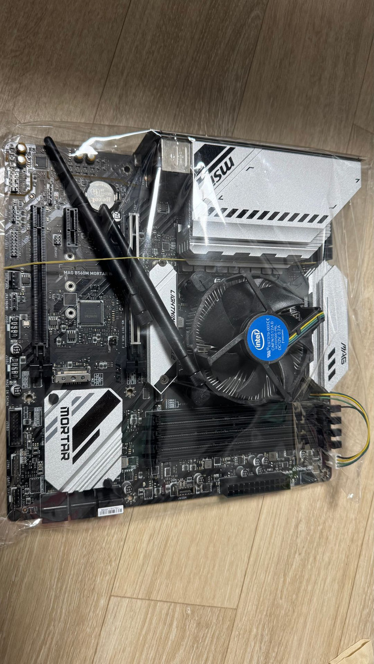 MSI MAG B560M 박격포 WIFI BLUETOOTH 입니다. i5-10400f CPU 포함입니다. - 현재는 단종된 박격포 모델 - 저가형 보드 X - m.2 ssd 방열판 부착 - 와이파이, 블루투스 전부 다 동글없이 가능 - DDR4 슬롯 4개 - i5-10400f 기본쿨러와 함께 포함 - 써멀구리스 제공 - 박스 X, 택배는 뽁뽁이 꼼꼼하게 포장하여 배송 메인보드와 CPU 전부 기변으로 인해 판매합니다.