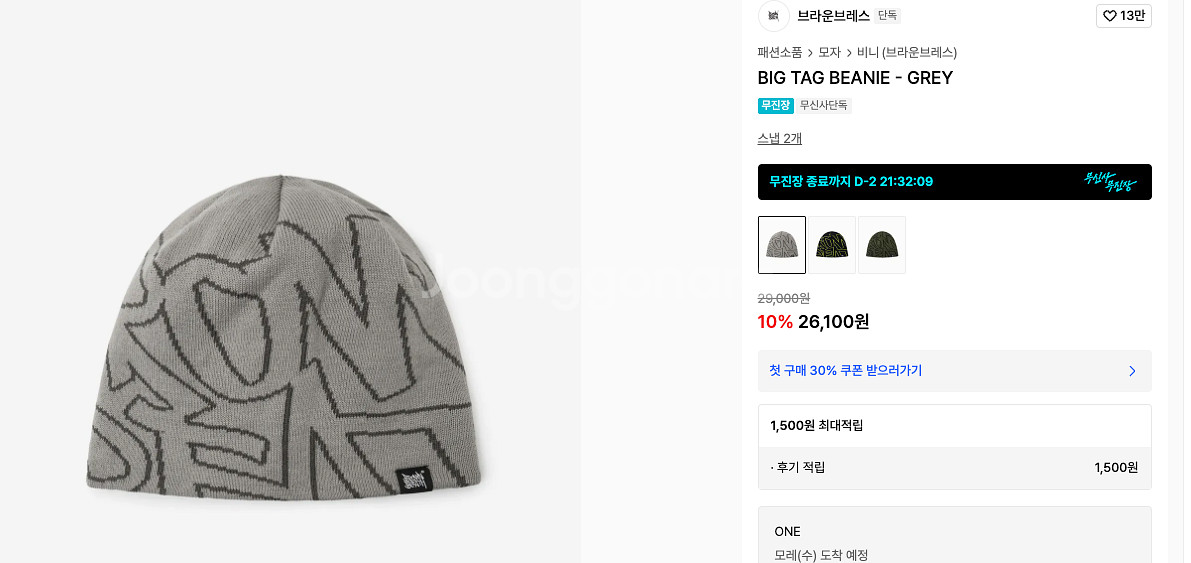 브라운브레스 새상품 비니