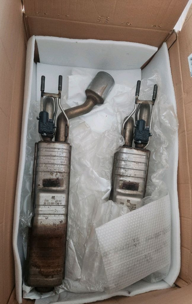 자동차용 순정 후기 시스템과 전용 매트 세트입니다. 박스에 깔끔하게 포장되어 있고 상태가 양호해 보여요. 차량 튜닝이나 교체용으로 활용하시면 좋을 것 같습니다. 벤츠G바겐 G63 차량용 순정 머플러와 매트입니다. 순정 정품 머플러 (앤드) (배기) 머플러는 사용감 있습니다. 차량 매트는 깨끗합니다. 교환 환불 불가합니다.^^