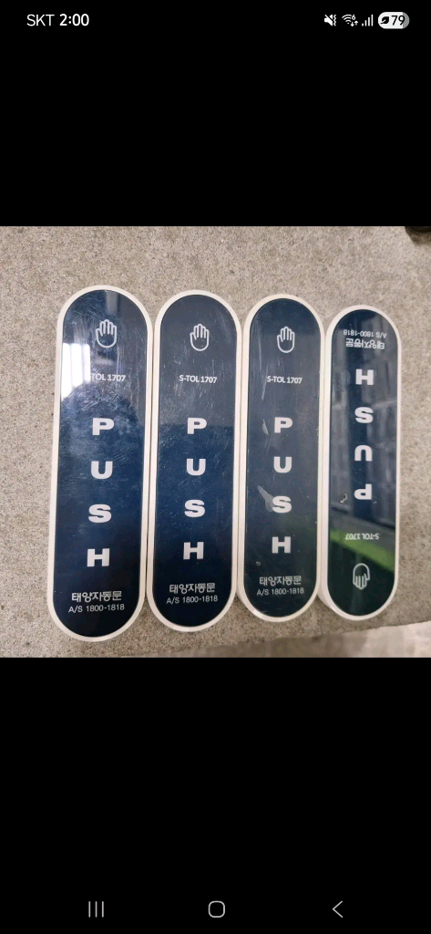 태양자동문 PUSH 도어사인 4개입니다 개당 3만원이구요 택배직거래 가능 문의주세요 S-TOL 1707 A/S 1800-1818