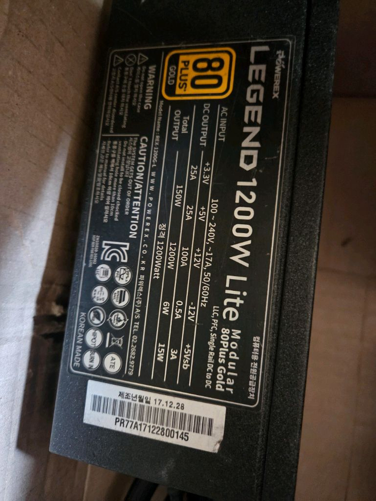 1200W 80플러스 골드 모듈러 파워서플라이입니다. 80플러스 골드 인증 제품으로 효율적인 전력 사용이 가능해요. 모듈러 케이블로 배선 정리가 편리합니다. cpu케넥터 2개 나머지 커넥터 넉넉해요