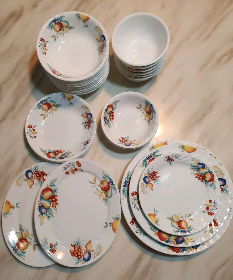 단종된 귀한 빈티지 코렐 후르츠하베스트 웨이브가 있어 고급지고 다른 코렐보다 사이즈도 약간커요 과일들이 탐스럽게 프린팅된 예쁘고 사랑스러워요 단종된 빈티지 특성상 사용감 있는것과 사용감거의 없이 보관용과 파스타볼은 택붙은채 새것' 윤기도 살아있고 양호합니다 [네이버 블로그] 블로그를 소개합니다. skn00899의블로그 | 미쎄스신컬렉션 https://m.blog.naver.com/skn00899 밥공기12.5×6cm 6개 개당값 8000>4개남음 국그릇16×5cm10개 개당9000>5개 대접시26cm5개 개당 ₩10000 중접시23cm 4개 개당₩9000 소접시18cm 3개 개당₩8000 오목소찬기 1397×4cm4개개당7000 오목 중찬기17×3.5cm 3개 개당₩8000 타원형중접시 2개24×19.5cm2개 개당₩10000 ※매너거래 해주세요. ※반품환불 예민 정중히 사양합니다. 택배 가능합니다