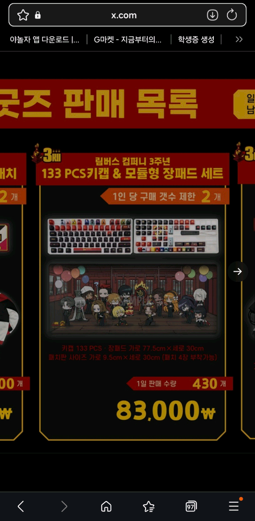 림버스 3주년 장패드 구합니다