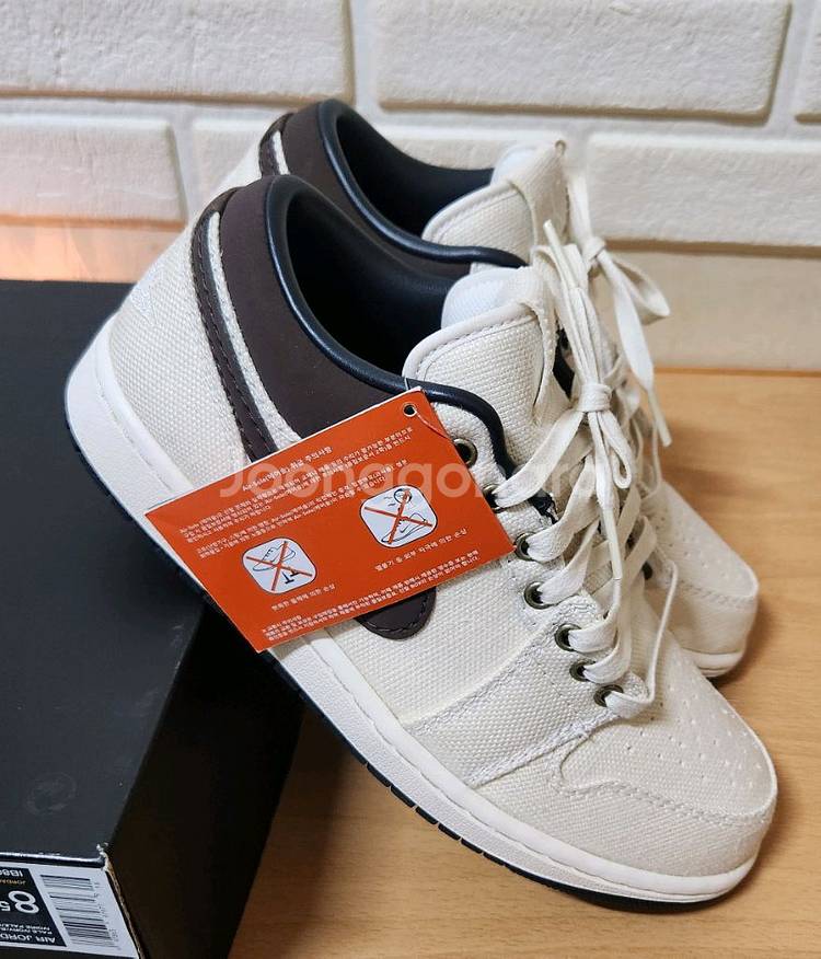 택 달린 나이키 에어조던 1 로우 PRM 260 사이즈 새상품입니다. 사이즈 260 베이지색 바탕에 갈색 나이키 로고가 포인트인 신발입니다. 실물 깡패라 너무 예뻐요. 문의 없으시면 바로 안전결제해주시면 됩니다!
