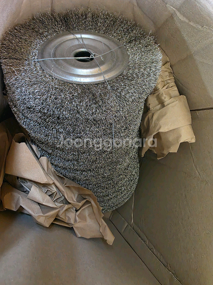 8인치 철브러시입니다. 미사용 철재나 금속 작업용으로 좋습니다. 외경200mm 내경25mm 사용목적과 달라서 방출합니다 택배가능