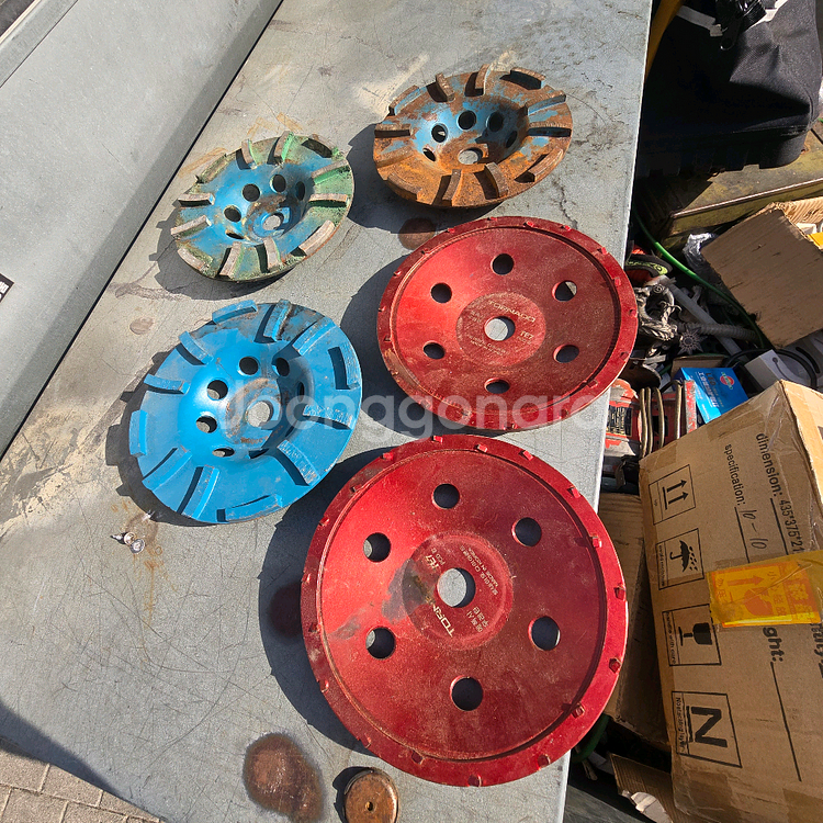 다양한 색상의 PCD 다이아몬드 클리닝 워터머신 여러 개 판매해요. 사용감은 있지만 작동에는 문제없는 상태입니다. 건설현장이나 청소작업에 유용한 장비예요. 토네이도 PCD(Poly-Crystalline Diamond) 컵휠 TE7 미사용으로 보이는 2개 EHWA 다이아몬드 컵날 미사용으로 보이는 것 1개 사용감있는거 2개 총 5개입니다