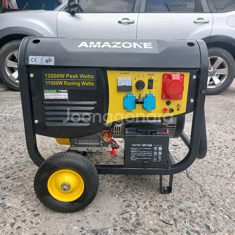 * 미사용 전기 발전기 * - 아마존 12000w (12kw) 산업용 발전기 입니다. - 휘발유도 넣지않고 한번도 사용하지 않은 미사용품 입니다 . - 무게가 상당하나 바퀴가 달려있어 이동시에는 혼자서도 끌고 다닐수 있네요. - 밧데리 장착되어 있어 휘발유 엔진을 키로 시동을 걸수있어 편리합니다 . - 판매가 : 180만원 ( 화물택배 무료배송)