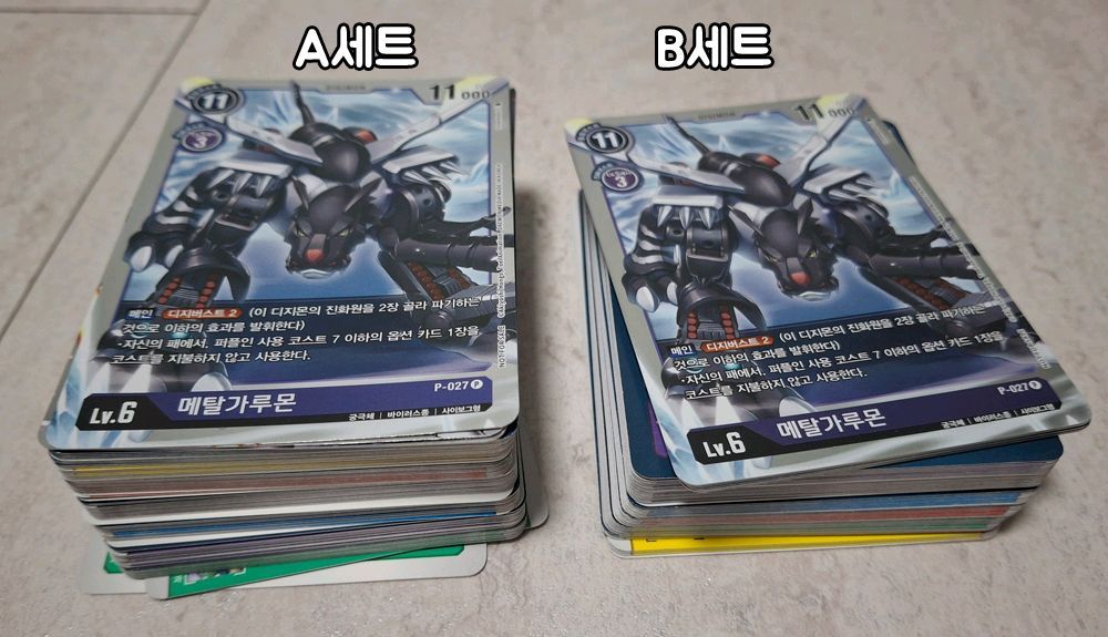 [거래시 주의사항] *CU 일반 3,700원 / 끼리 반값택배 2,000원 추가됩니다. *로테이션 근무중이라 통화/직거래 불가하며, 확인 느린점 양해 부탁드립니다. *한번 사람 손 거친 중고품인만큼 환불 불가합니다. *분할, 예약, 네고 문의에 답장 안드립니다. *타 장터에도 게시글 올려져 있어서 입금 가능순으로 거래 합니다. [디지몬 디지몬 어드벤처 스타트 TGC 카드 ] ▶A+B세트 일괄 10,000원 -스타트텍 01~06의 일부 카드 입니다. A세트 구성은 B세트+a 입니다. (사진 참조) 구매 후 바로 소분해서 상태 양호하나, 카드 일부가 휘어 있는 공정 하자 있습니다.
