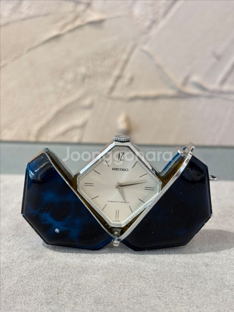 세이코 모모타로 빈티지 회중시계 입니다 상단의 버튼을 클릭하면 좌우로 열리는 아름다운 시계입니다 구하기 힘든 레어한 시계입니다 상태는 약간의 사용감 외 상태 양호합니다. 케이스 좌측에 칩하나 있고 측면에 까짐괴 녹이 조금 있습니다 펼쳐질때 오른쪽이 살짝 덜 펼쳐지네요. 동영상 참고하세요 무보정 사진이므로 상세 사진을 확인바랍니다. 빈티지 수동시계 특성상 일오차가 있을 수 있습니다. Made in Japan Size : 38(가로) Color : 블루마블 - 모든 시계는 제가 직접 깨끗이 청소하고, 24시간 이상 동작 확인 및 기본적인 정비를 하여 이상이 없는 제품만을 판매합니다. - 빈티지 제품은 특성상 사용감, 스크래치 등이 존재하며 이러한 경우 사진과 함께 최대한 자세히 설명을 하도록 노력하고 있습니다. - 새상품이 아니므로 초기 불량 이외에는 A/S, 교환, 환불이 어려우니 궁금한 점은 톡으로 문의주시고 구매바랍니다. - 택배 또는 매장 방문하셔서 구입가능합니다 (서울 광진구 광장로75-1, 1층 유로빈티지)