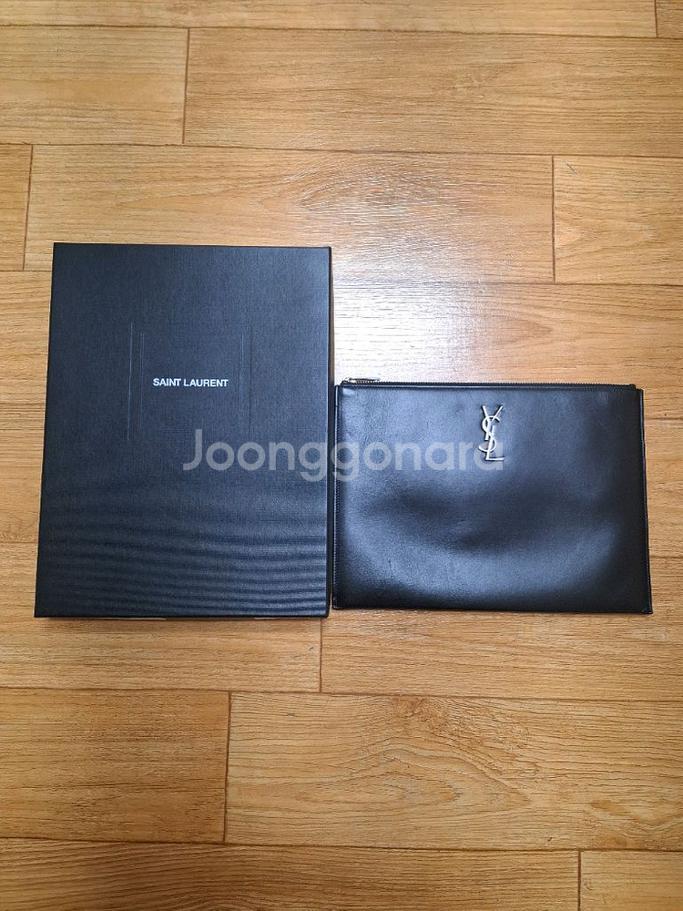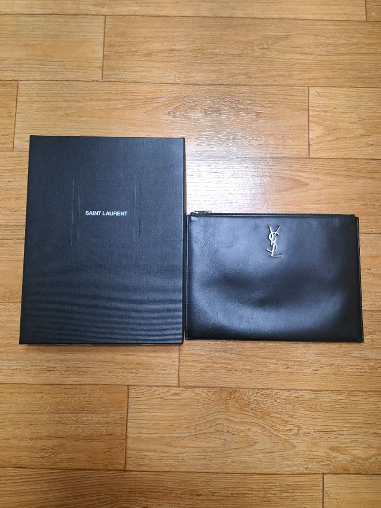 생로랑 모노그램 레더 클러치백 판매합니다 고급스러운 가죽 소재로 제작되었고, 은장 로고가 포인트입니다. 내부 수납 공간도 넉넉합니다. 박스 포함 가로 : 29cm 세로 : 21cm 폭 : 1cm