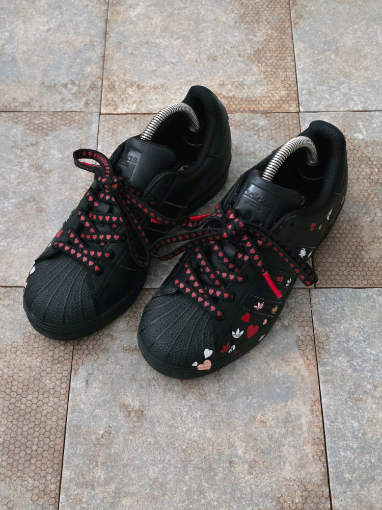 Size : 220(표기 사이즈) Condition : 8/10(새상품 기준) -사용감(사진참고) Made Years : 2019 Comment *아디다스 슈퍼스타 발렌타인데이 에디션 모델입니다. *세탁 완료한 제품입니다.