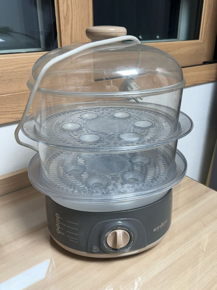 에미데 2단 계란찜기입니다. 사용감이 있지만 잘 작동됩니다. 저렴하게 가져가세요~