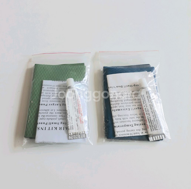 ■아웃도어 용품 수선 키트 - 캠핑 의자, 텐트, 타프, 에어매트리스 등을 수선할때 사용할 수 있는 키트입니다. - 각 9cm × 13cm 사이즈 2장씩 있으며, 필요한 크기에 맞게 잘라서 사용 할 수 있습니다. *새상품이며, 컬러별 각각 판매합니다.