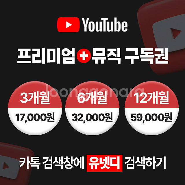유튜브 프리미엄 이용권 (3개월 / 6개월 / 12개월 선택)
