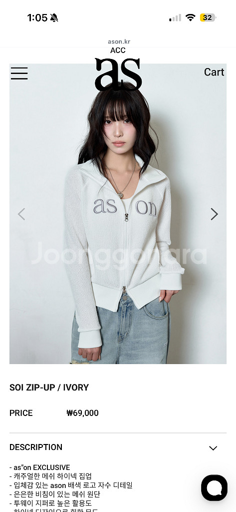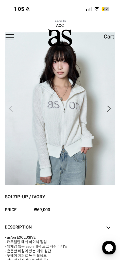 애즈온 SOI ZIP-UP 솔 집업 아이보리