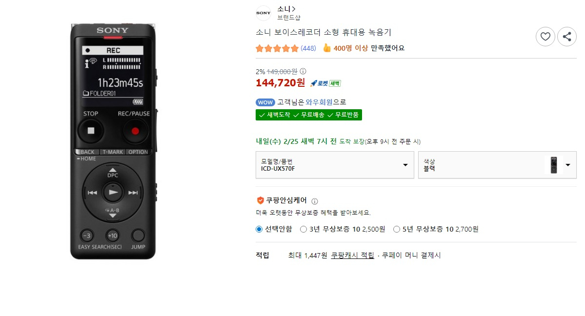 소니 보이스레코더 소형 휴대용 녹음기, ICD-UX570F