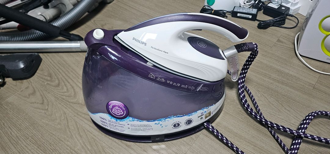 필립스 퍼펙트케어 아쿠아 스팀다리미 . 작동 이상없습니다. . 현제 신품가 40만원 넘네요 . 가정용으로는 최상위급 제품이라 봅니다.