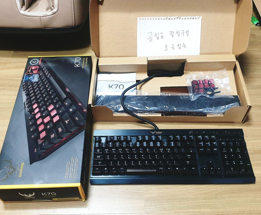 풀박스 명품 커세어k70 청축키보드 7만2천에 싸게 저렴하게 팝니다.(박스및 구성품 포함/ 팜레스트+정품FPS여분 이미지