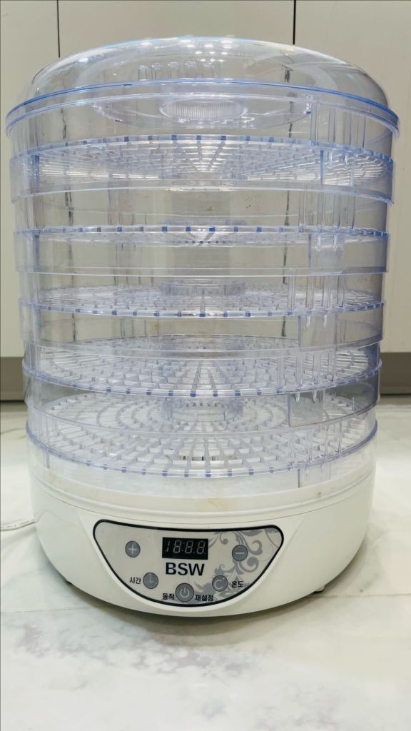 고구마 말랭이, 감 말랭이 용도로 사용 했습니다. 5단 구성이고 음식들 쫀득하게 너무 잘 말라요 사용감은 살짝 있지만 매번 위생적으로 사용하고, 보관도 항상 깔끔하게 세척 후 완전 건조시켜서 원래 보관박스에 잘 보관하며 관리 잘 했습니다 일반택배 = 5,000 직거래 = 불광동 챗 주세요^^