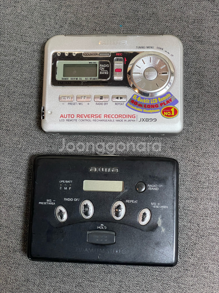 아이와 워크맨 2개 세트 수리용 부품용 팝니다. - JX899 껌전지로 라디오 잘나오고 소리 좋습니다. 라디오로 사용해도 좋을것 같습니다. 버튼 잘 인식 합니다. 테이프는 구동 소음은 들립니다. 커버에 파손부분이 보이고 테이프 쪽에 부품이 없는듯하니 사진 확인해 주세요. - RX660 전원 확인 안됩니다. 베터리 커버 유실 입니다. 그외 다른 파손은 안보이고 유관상 없는 부분은 없는것 같습니다.