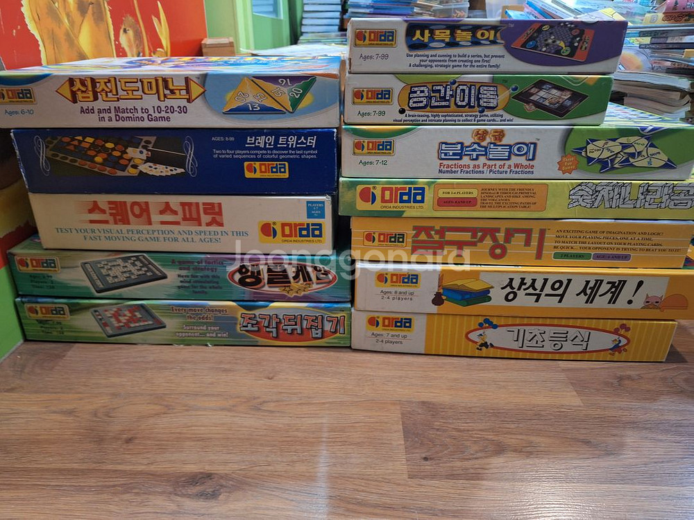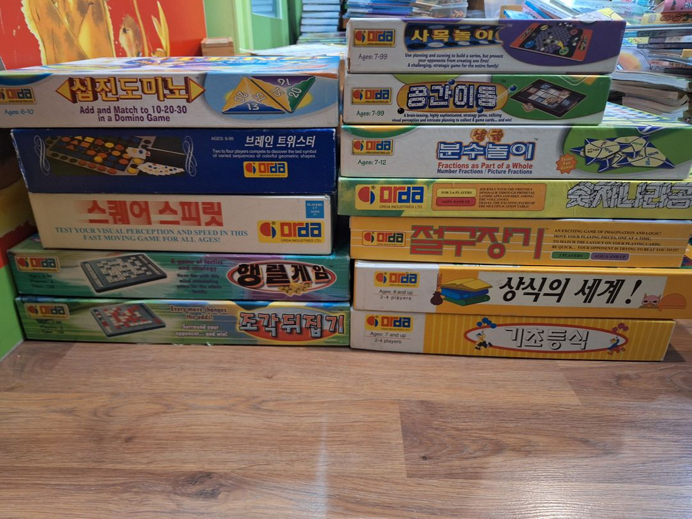 오르다 논리세트 교구 12종(18종중 6종 없음/구성 사진 참조) 공간 이동 카드 1장 없음/상급분수놀이 카드3장 없음/스퀘어 스피릿 카드 1장 없음/십진 도미노 카드 1장 없음/숫자나라 공룡 공룡 없음 그외 구성 완벽(하나하나 갯수 완벽히 파악 하였습니다) 사진상 보이듯 구판으로 상자는 사용감 있으나 내용물들은 미사용 수준으로 대부분 깨끗합니다 -5만 9천원(택포)