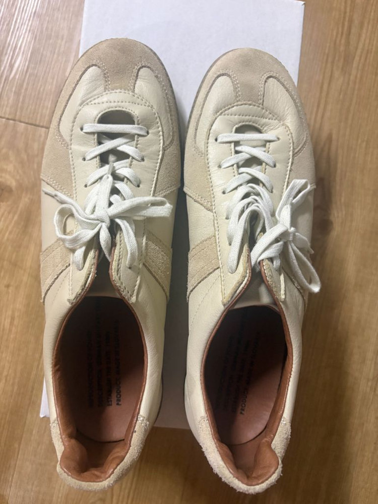 리오파 독일군 스니커즈 270사이즈 입니다. 전체적으로 깔끔한 상태이고 밑창도 양호해요. 클래식한 디자인으로 데일리 착용하기 좋습니다. 2회 짧은 시간 착용했습니다.