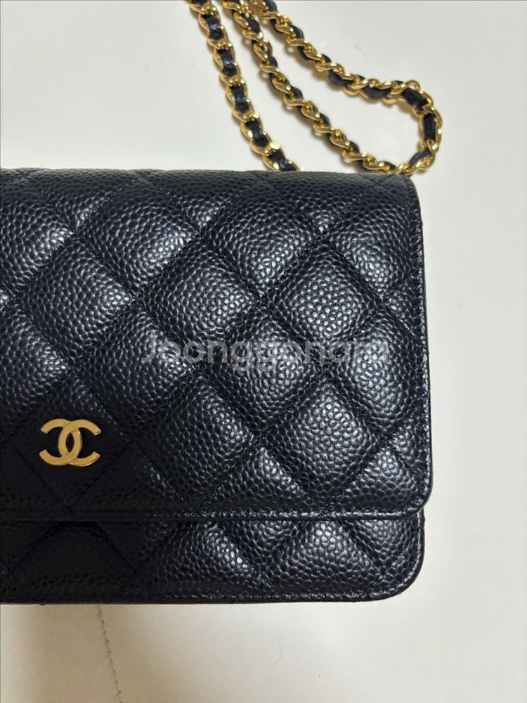 샤넬 클래식 WOC(월렛 온 체인) 판매합니다. 블랙 캐비어 가죽에 금장 체인으로 유행 타지 않는 디자인이에요 백화점 구매 정품 (21년 롯데에비뉴엘 월드타워점 구매, 보증서 있음!) 스크래치 없이 전체적으로 상태 아주 좋음 모서리 마모, 체인 늘어짐 없음 내부 깨끗, 냄새 없음 더스트백 + 가방닦이 포함 실사용도 몇 번 안해서 상태 좋아요 고가 제품 특성상 직거래만 진행하고 거래 시 충분히 확인하셔도 됩니다.
