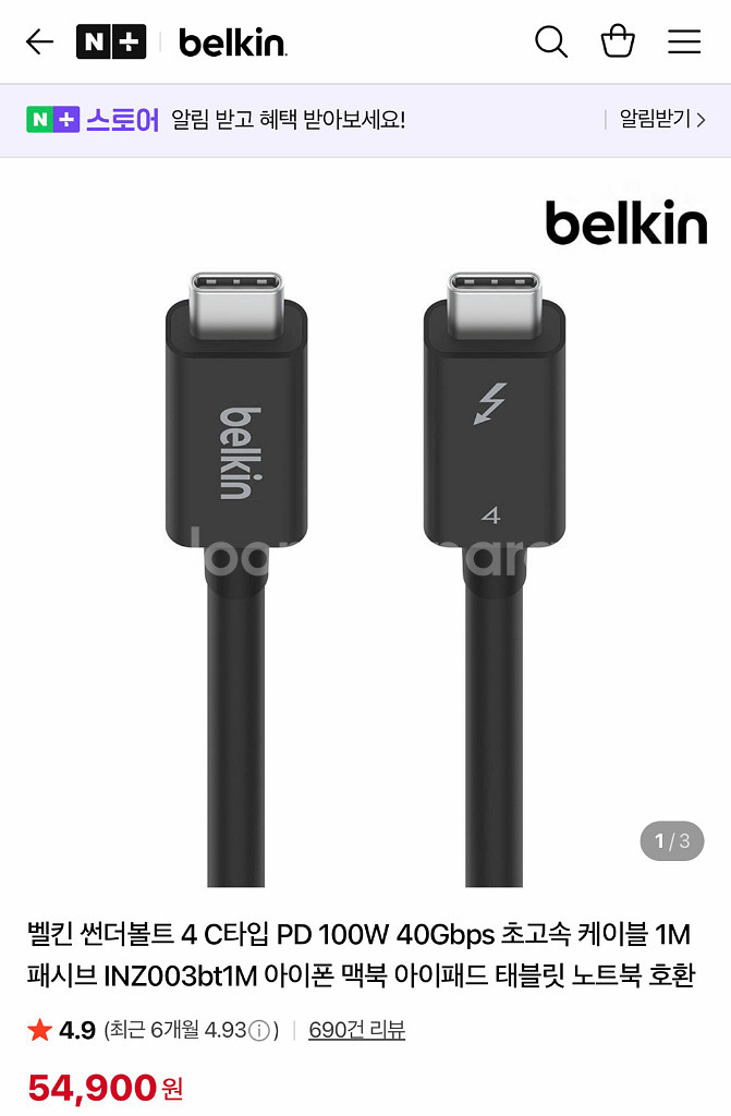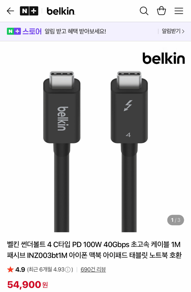 벨킨 썬더볼트4 케이블 1M 새제품