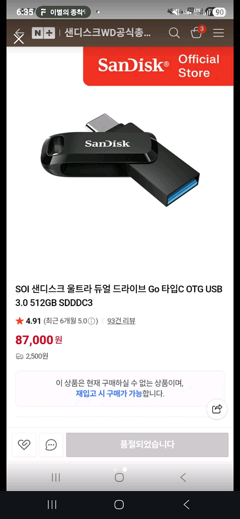 ![미사용/품절] 초고속샌디스크 512GB 듀얼 USB (C타입+3.1grn1지원)--0](https://img2.joongna.com/media/original/2026/02/24/1771925527477XOx_AuTqE.jpg?impolicy=resize)