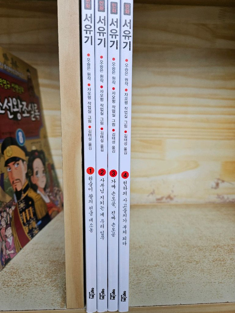만화 서유기 전4권 세트 판매합니다. 오승은 원작, 자오펑 그림의 아동용 만화입니다. 1권 원숭이 왕의 천궁 대소동부터 4권 천하의 사고뭉치가 부처 되다까지, 아이들이 재밌게 읽을 수 있어요. 별도 문의 없으시면 바로 안전결제 부탁드려요!