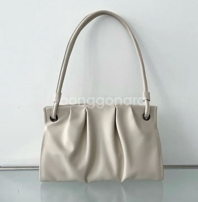 정가 -59800원 트렌디한쉐입이 눈에 띄는 수납력 갑 숄더백이예요 가방 옆 부분의 모양을 보시면 아시겠지만 납작하지 않고 트라이앵글 형으로 수납력이 좋아요 작은 소품들을 보관 할 수 있는 서브 포켓이 있어서 수납하기 더 편합니다 고급스런 셔링으로 무드를 잡아주었고 지퍼대신 안쪽에 자석을 붙여 가방을 열고 닫을때 불편하지 않고 간편해요 흐물거리지 않고 강하게 각이 잡혀있지도 않아서 편하게 또 예쁘게 들고다니기 딱 좋아요!
