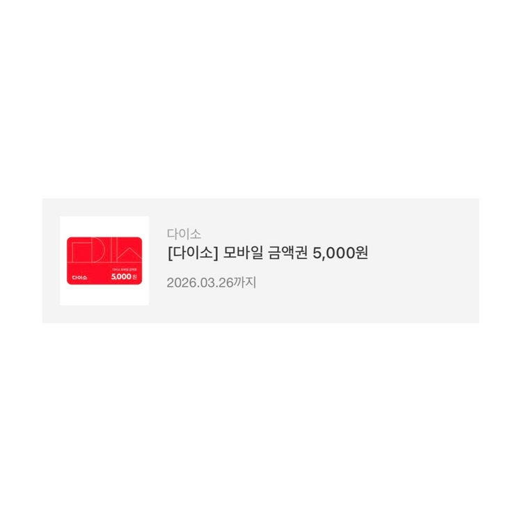 다이소 5천원 기프티콘 모바일 금액권 판매합니다. 2026년 3월 26일까지 사용가능합니다.